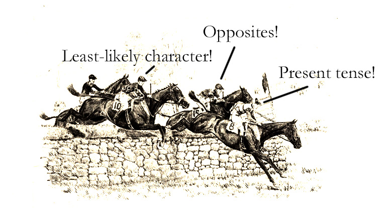 Before we get started, here’s a little history: Randy Albers, one of my writing professors at Columbia* recalls the provenance of the exercise. A pair of decades back, John Schultz, founder of the fiction writing program there, walked into a faculty meeting with the idea of semester-long experiment that forced writers to take an unfinished narrative through a series of twelve steps. He provided a list of the steps and left it up to the instructors to adapt as they saw fit. Randy, who liked the exercise but bristled at the notion of a twelve-step program for writers, trimmed it to eleven and rebranded the “steps” as “leaps” in to more fully embrace the horse jumping metaphor.