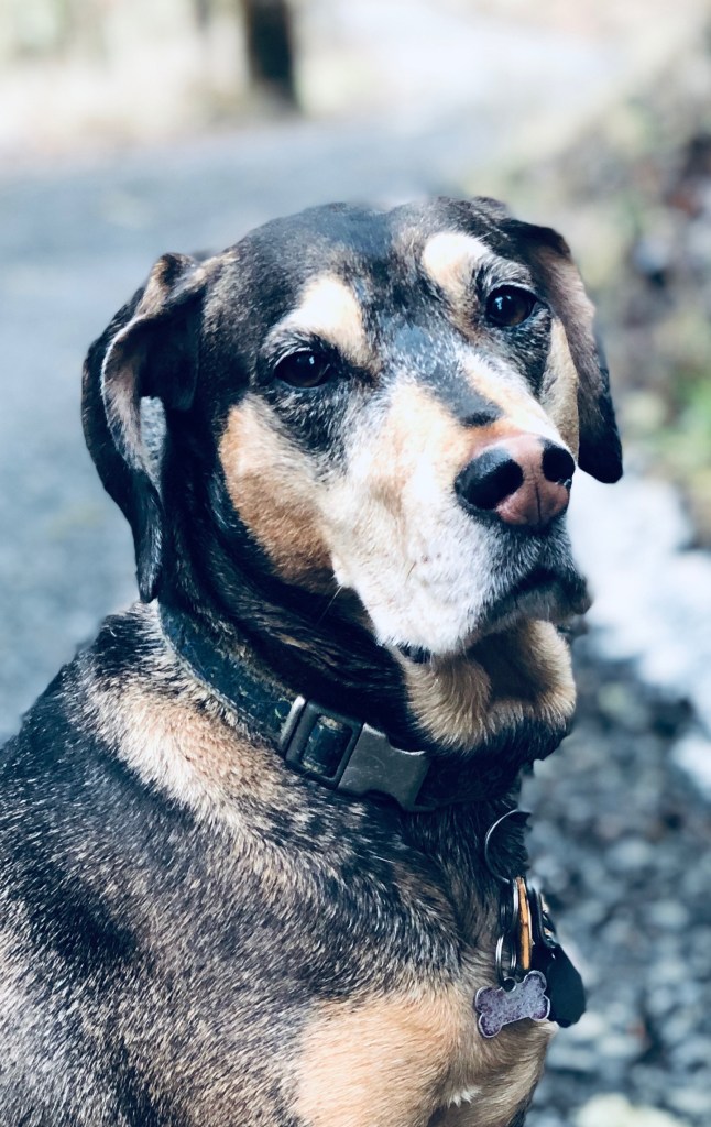 Maggie is the best trail dog because when you’re in the woods with her she wanders with a specific sense of aimlessness that is instructive for writers. For a dog, a walk in the woods is high art. She follows the twin muses of her nose and curiosity. She engages in prolonged tangents during headlong romps into the temperate rainforest near our home in Oregon, chasing after the cackle of a far-off raven, taking an extended wallow in greasy mud smeared with wild turkey scat and splashing in cold, clear pools welling before the entrance to culverts.
